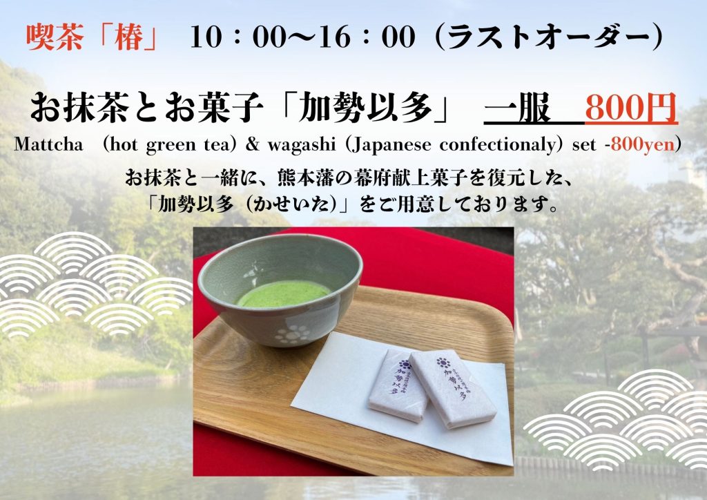2025年10月26日 喫茶「椿」冷抹茶・グリーンティー提供終了のお知らせ 喫茶「椿」で夏期間に販売していた冷抹茶とグリーンティーは2025年10月31日(金)で提供を終了いたします。 温かいお抹茶は引き続きお楽しみいただけますので、是非お越しください。