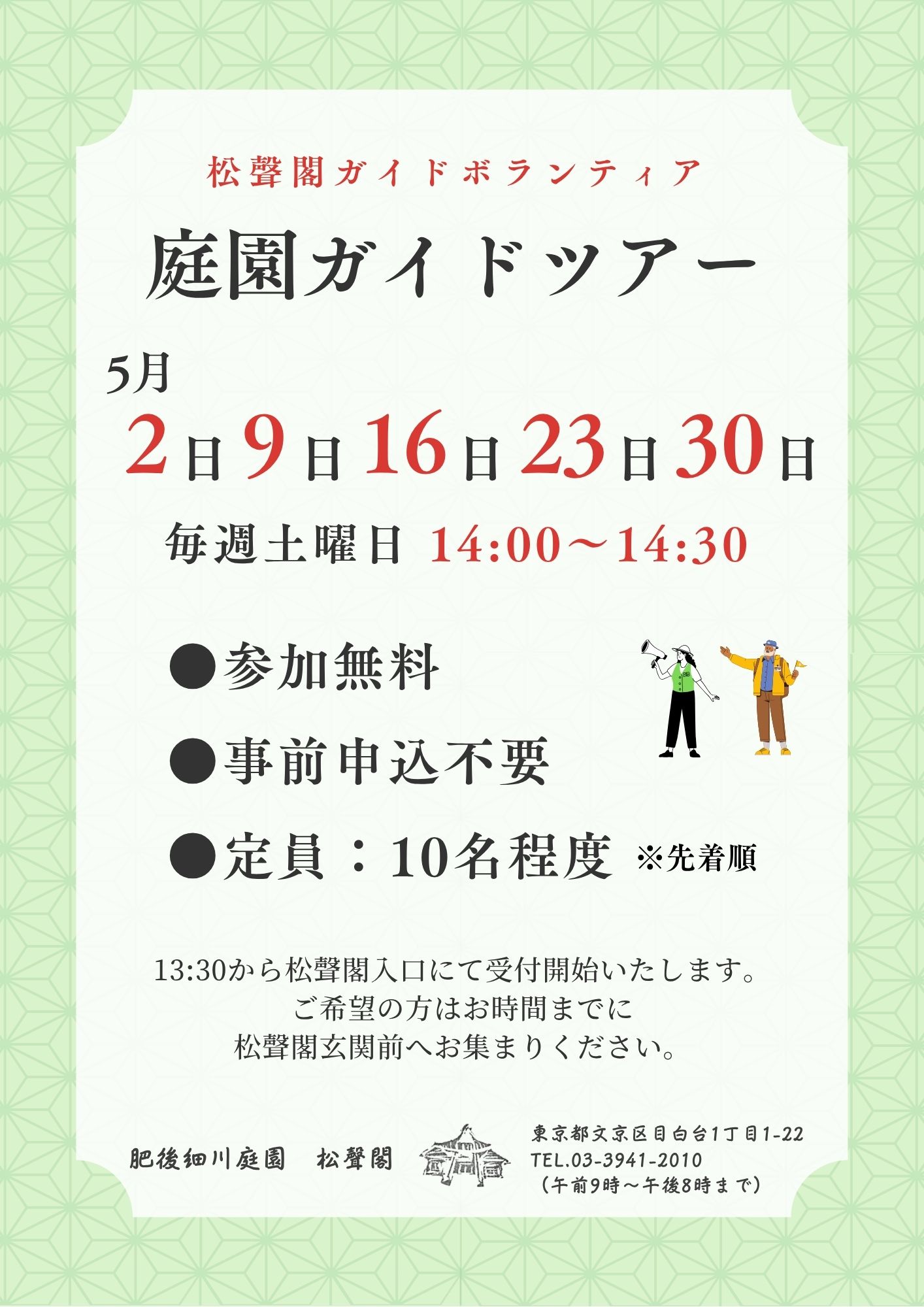 ガイドボランティアによる庭園ガイドツアーを毎週日曜日に開催しています。